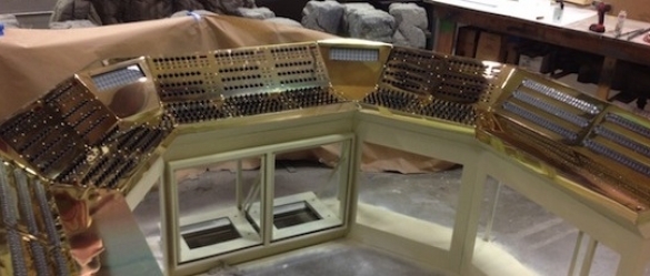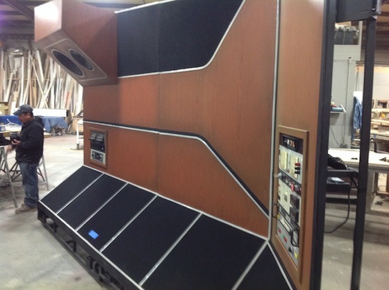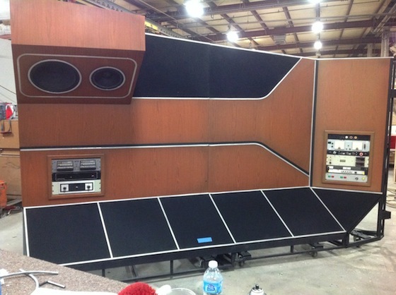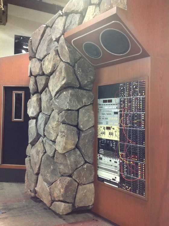 Daft Punk 演出的黃金混音控臺,並不是道具反而是每一個旋鈕和插孔都是貨真價實可以使用,並且做演出的器材,他們將老舊的聲音設備結合華麗的舞台,從遠方看起來舞台就像是一艘太空船的母船,後方的合成器插孔就像是船艙的控制台一樣。