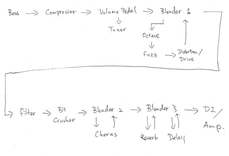 吉他手有大盤效果器早已不是什麼新鮮事;近年來這現象在當代bass手中也開始漸漸變得普遍。尤世儒和程杰是兩位音樂背景和風格都完全不一樣的bass手,但他們有兩個共通點: