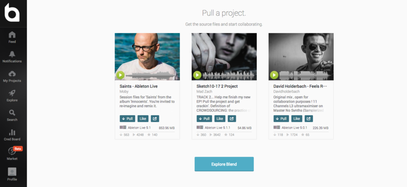 Blend.io 是為了這樣的服務產生的,它可以將你的 Dropbox 帳號同步,但是卻是針對音樂的 Project 檔案同步,若再寫程式有用過 Github 的朋友,對於 “Push” 和 “Pull” 這兩個指令一定不會太陌生,而 Blend.io 就用 “Pull” 這個字眼來當作同步音樂的下載模式。現在 Blend.io 上有 Moby, Vince Clark 的 Project 可以同步下來研究或是做成別的 Remix 等各種你想要做的事情都可以。
