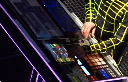 Fritz Hilpert 使用 Lumur 控制器還有 Native Instruments Maschine,另外有一些小小的控制器不太確定是什麼,加上客製化的控制器搭配 Doepfer R2M Ribbon。