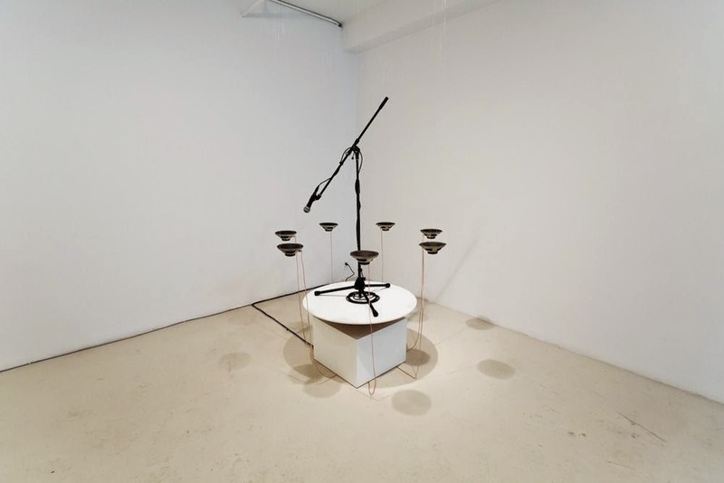 聲音藝術家 / 作曲家 Adam Basanta 的作品 The Sound Of Empty Space ( 捕捉「空」間的聲音 ),包含了三個不相連繫的聲音裝置系統,探索麥克風、揚聲器和聲音環境 ( Acoustic Environment ) 之間的關係。他利用人為控制或是自然生成的麥克風回授 ( feedback ),嘗試將器材作為發聲的「樂器」,翻轉麥克風作為接收工具的傳統角色。