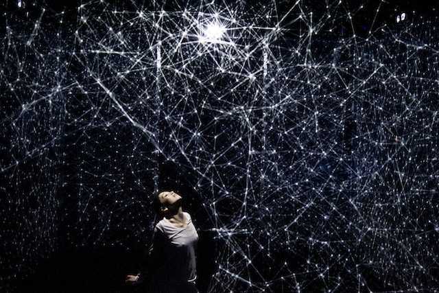 一位舞者在半透明帷幕的立方體內舞動著雙臂和身體,平面視覺藝術以 3D 投影在她四周的空中,飛舞的線條和美麗的圖像令觀者分不清此處究竟是夢境或是現實。由雙人組合 Adrien M / Claire B 創作的數位單人表演作品 Hakanaï,在今年的三月17日進行首場表演。