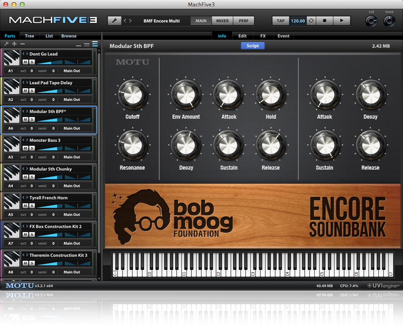 Bob Moog 基金會和 MOTU 合作,將在 Bob Moog 81 週年誕辰的時候(5/23)推出 Bob Moog Foundation Encore Soundbank 音源,收入都歸為該基金會來紀念 Bob Moog!Encore Soundbank 音源是集結各個有很棒的聲音樂器和節奏聲響,內含超過 2GB 的聲源(24-bit 聲音解析度)、200 個 Preset,而這些聲音都是由 29 位音樂家製作的來紀念 Bob ,音樂家包含 Vince Clarke, Jordan Rudess, Al Kooper 等。