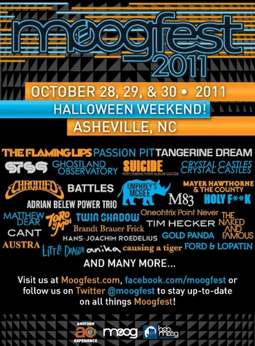一年一度的 Moogfest 音樂祭又要來了,今年(2011)將於 10.28 ~ 10.30 在 Moog 的發源地 Asheville 小鎮舉行。