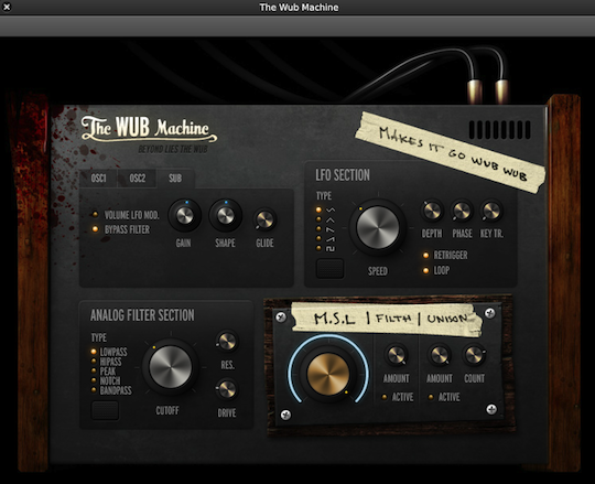 The Wub Machine 是一個 Soundation 最近新增添的虛擬樂器(合成器),它擁有兩個震盪器、LFO、類比濾波器和 M.S.L / Filth / Unison 調整,聲音十分不錯也蠻好玩,利用 Filth 可以調整出一種髒髒雜雜的聲音,或許十分適合用來做 Dubstep 呢!The Wub Machine 介面如下:
