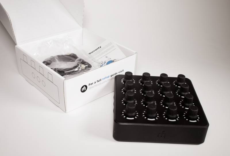 由 DJ TechTools 所推出的 Midi Fighter Twister,有著相當極簡的正方型外觀,以及輕巧方便攜帶的尺寸。而最大的特色就是它是個只有旋鈕的控制器。