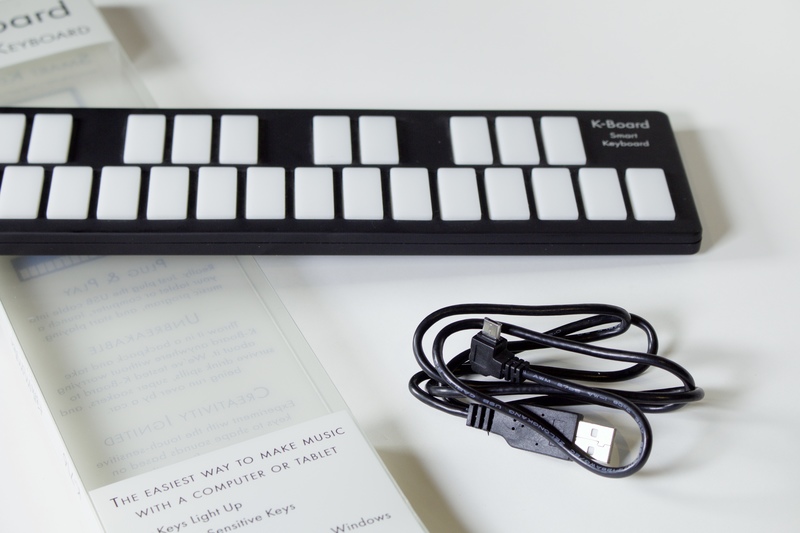從透明的塑膠盒外裝就可以直接看到 K-Board 簡潔的設計風格,包裝上便清楚的表示其可以在各通用平台上面使用,也有針對其許多智慧型控制設計的簡單說明。另外附有一條mini USB線可以直接連結電腦使用,假如想要控制 iPad 需要另外購買 Apple的 轉接投搭配使用。