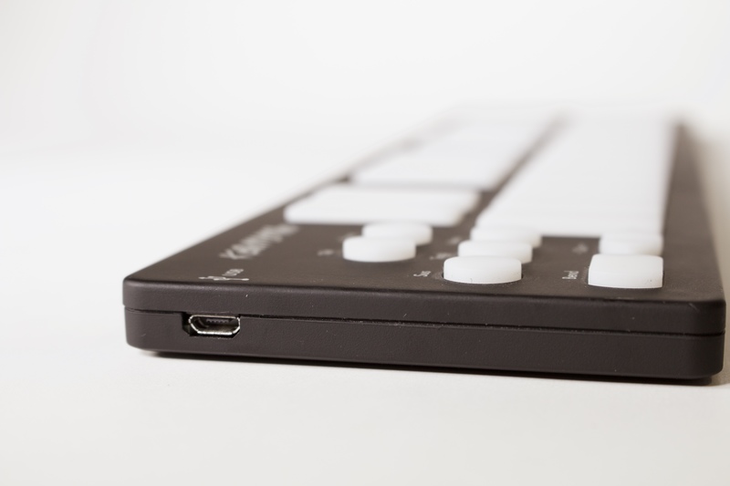 唯一的外接孔就是在左側的 USB 輸出,沒有任何其他的 MIDI in/out 接孔。也因此,使用不需要額外供電,只要透過 USB 線就可以直接使用。這邊需要注意的是,假如使用 hub 的話要記得使用有 power-supply 的,不然可以能會有連接失敗的問題。