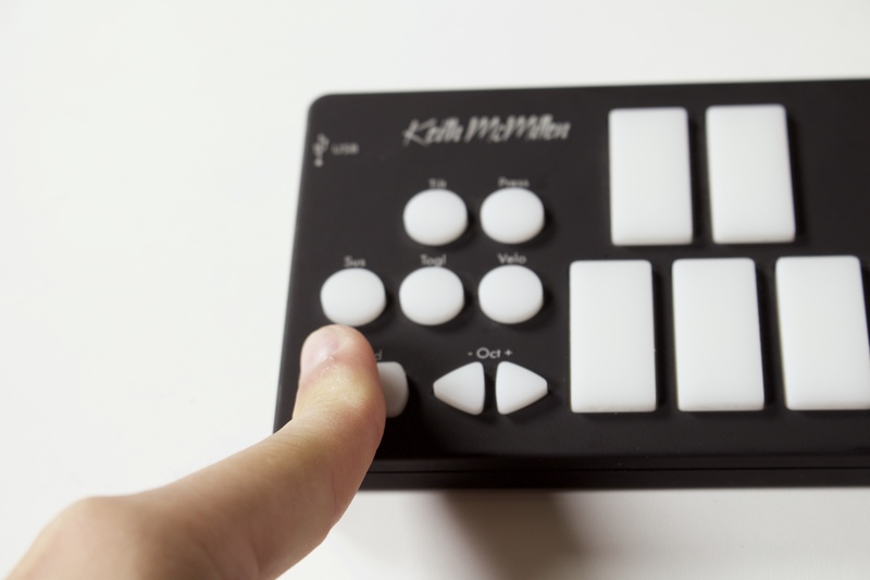 只要將控制區域的 Press 按鈕長壓就可以開啟/關閉鍵盤的壓力感應。壓力感應的原理就是根據手按壓按鍵的力道去控制送出相應的控制訊號。K-Board 預設是將壓力感應傳送成為 MIDI CC #1 (Mod Wheel),也就是改變對應音符的 modulation ,若想要改變可以透過 KMI 提供的官方編輯器去改變 K-Board 軔體的設定。