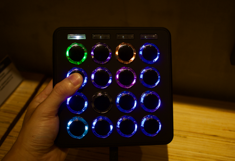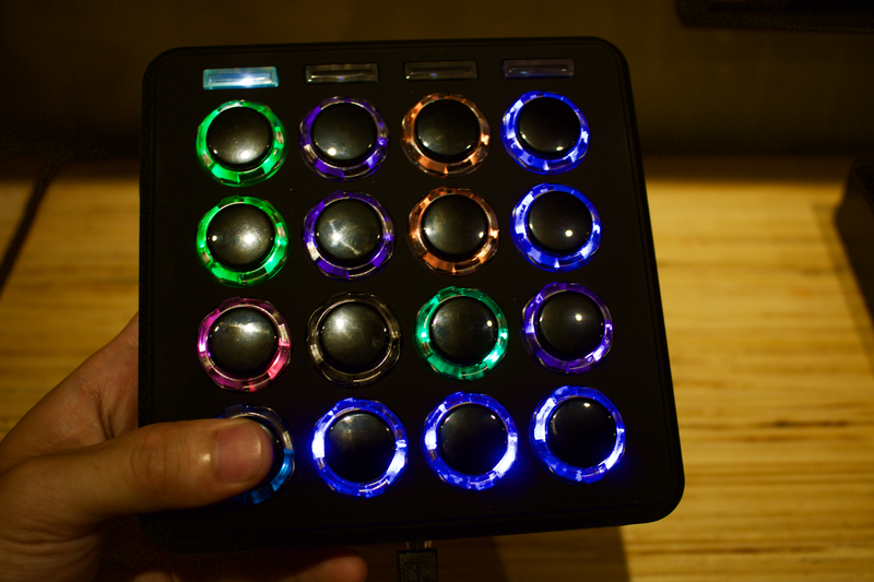 雖然是 MPC 類的控制器,但是按鈕改良成像是街機遊戲一樣可連發的類型,對現場演出相當有利。