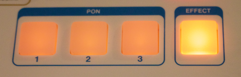 比較特別的是有內建兩組效果,相當有誠意,每個效果有六組設定可以選擇。Reverb的部份使用旋鈕來調整你要加上的效果量,而另一個變聲效果則是開關式的,按下之後效果就會跑出來了。