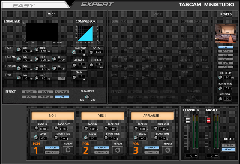 切換到專業模式之後,就出現一個黑黑的,看起來是專業風格的操作介面了。如上述說的聲音等化器的部份,到這裡來後能調整的更細,更精準的推出你想要的高頻、中頻或是低頻,還能加上 Compressor (壓縮器)讓聲音聽起來更一致,不用怕突然的爆音或太小聲。