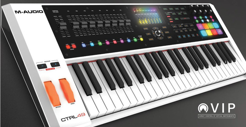 M-Audio 一直是 MIDI 控制器的家喻戶曉的名字,多年來,他們的新產品不失望。 CRL 49 上的界面看起來很像是想要與Komplete Kontrol 系列相匹配。 然而,M-Audio CTRL 49 附帶的一個偉大的功能是能夠使用 VIP(Virtual Instrument Player)軟體訪問 VSTi 樂器,效果和在鍵盤上設置分割。