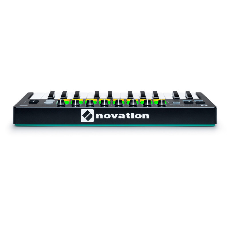第二代的 Novation Launchkey Mini 主控鍵盤,擁有 16 個力度感應及三種背光顏色顯示的打擊墊,可以用來製作循環樂句、虛擬樂器、效果器、操控播放面板的控制等。Launchkey Mini 還配置了一個 25 鍵的鍵盤,8 組可配置的旋鈕以及 7 個功能鍵,還有兩個進階演奏鍵,讓音樂的一切掌握在手裡。第一代跟第二代的 Launchley MINI 的差異,除了主體顏色從橘色變成綠色以外,其他沒有太大的差異。