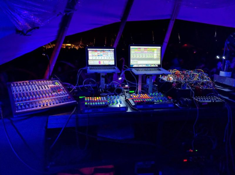 Rich:在有模組合成器的演出系統,需要大量謹慎地控制與準備,它是一個原始的並無法預測的樂器。我們兩個都非常享受這些從我們即興中帶了的有風險且不可預期的因素。我想 Christie 對這些演出前需要大量研究且謹慎地準備的素材的過程也非常享受,並且挑戰維持著控制,以免讓模組化合成器走向混亂的狀態。而我則是傾向透過簡單方便加入節奏組的堆疊、Bassline、人聲或效果,帶入較侵略性的東西到現場演出中。