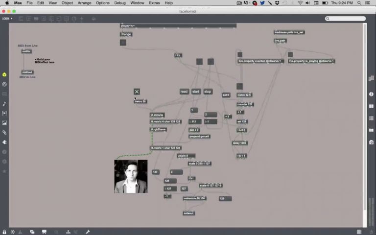 Tom Cosm 製作了一個 Cycling 74 Max App,將圖片轉換成 Ableton Live 中的 MIDI 訊號,這是一個好好玩的程式,你可以創造出有趣的 MIDI 的安排,可以截取一些有趣的圖片然後將圖片導入 Max app 裡,用 Ableton Live 打開然後等待程式逐漸掃描和輸出 MIDI 音符。