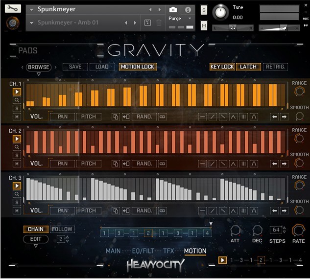 我們創造 GRAVITY 並且提供多種工作的流程。對於要緊湊時限完成作品藝術家,他們需要簡單的選取音色,並立即的創作。這些人會發現我們精心設計的樂器,同時引起他們的創造力;而對於想要改變、客製自己音色的人,GRAVITY 提供相當多的選項,包括每個 channel 的 ADSR、進階的 Filter 內建 LFO 控制,每一 channel 皆有 EQ 與總輸出效果器。總輸出效果器有 Convolution reverbs 、可同步的雙聲道 Delay,破音、Chorus,還有獨家的 Punish 與 Twist 來增加更多的聲音個性或讓聲音更加激烈。