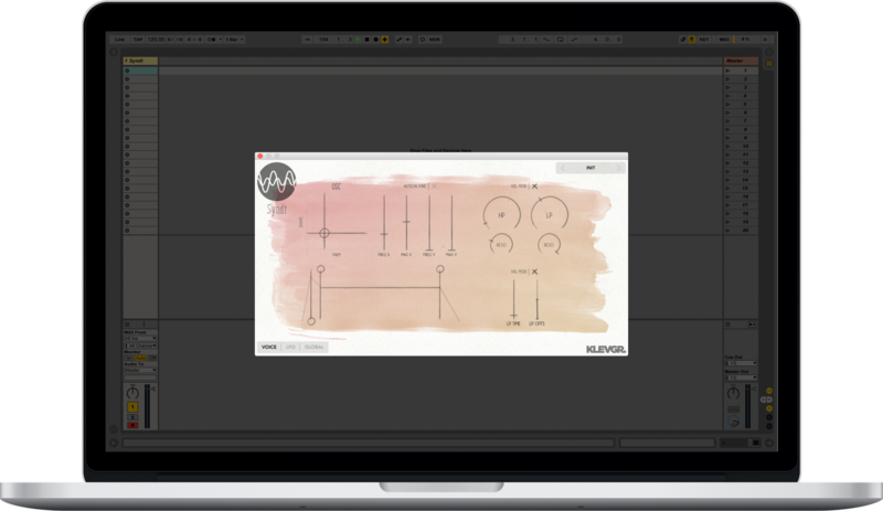 Syndt 是一種具有很多可改變的高品質複音發聲數的合成器。振盪器波形可以在正弦波到方形波之間的變化,並可以改變脈衝寬度。 形狀和脈衝寬度均可由兩個獨立的 LFO 調製。 通過微調低通和高通濾波器與單獨的過濾器 Attack 設置組合,此合成器可以創建一些生動有趣的聲音。