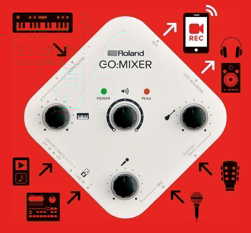若是你擁有吉他或 KB 等樂器,需要做彈唱或純演奏的演出,可以使用智慧型手機專用的音訊混音器: GO:MIXER