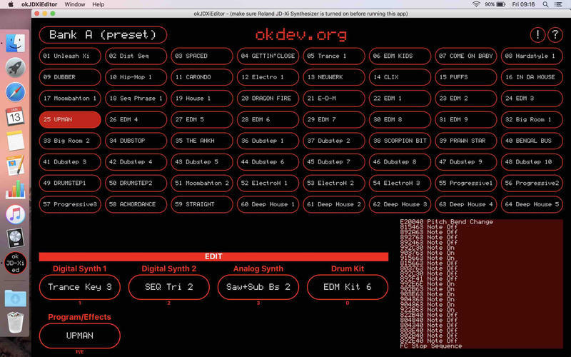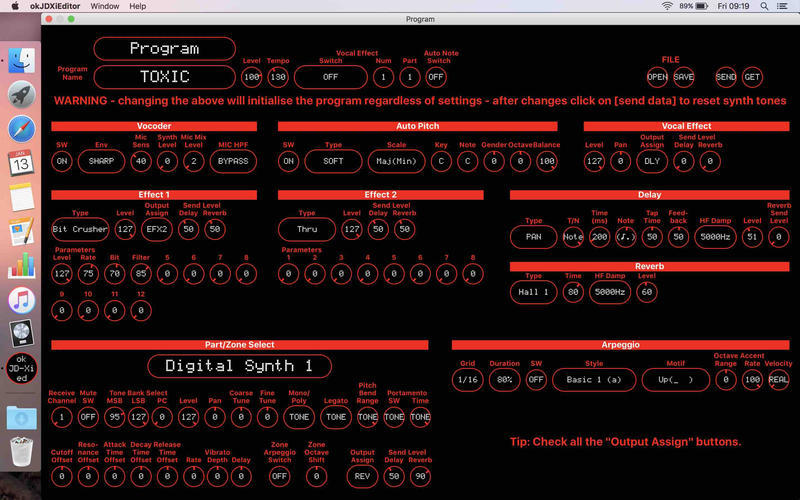 開發者 Oliver Kuhn 在 MacOS X 上面推出了一款名叫 okJDXiEditor 的免費編輯軟體,是專為 Roland JD-Xi 合成器所設計的音色編輯器和音源庫。