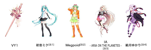 而 VKB-100 中會先附贈一組免費的音源 VY1,這組聲音的暱稱為「扇姐」,是由 YAMAHA 所開發。而另外也可以再加購四組音源,分別是「初音ミク」「Megpoid」「IA」和「結月ゆかり」。
