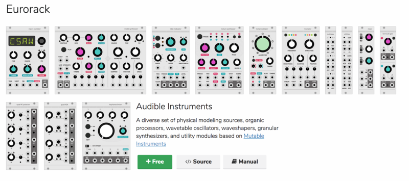 VCV Rack 目前並不是所有硬體的模組化合成器都有的,現有可以使用的模組有 Audible Instruments(仿 Mutable Instruments), Befaco, Grayscale 和 E-Series(仿 Synthesis Technology)。
