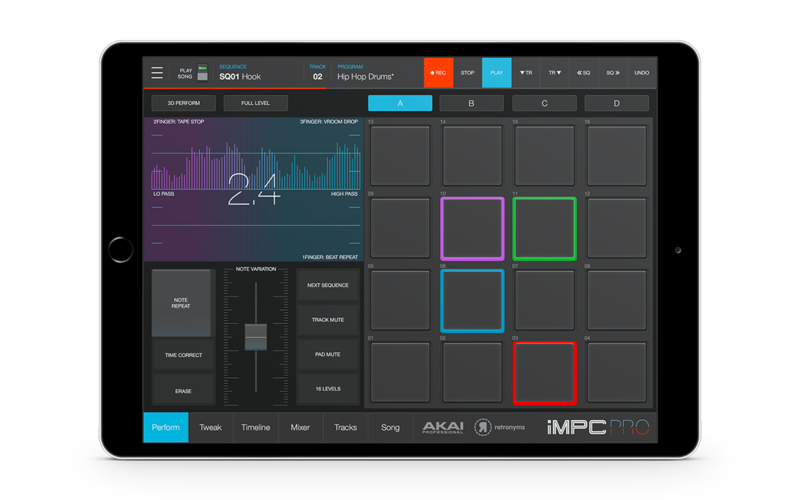 由 Akai 出品的 MPC 系列,一直都是許多 Beatmaker 喜歡的打擊板系列,自從 Akai 開始開發 App 之後,讓許多過 iPad,創造出許多的節奏。特別是 iMPC 可以從許多地方載入聲音,像是雲端硬碟或是 Spotify 等,相當符合現在人的需求,且帶有 64 軌的編緝空間,加上滑順的工作流程,更是它成為強大的節奏 App 的原因之一。