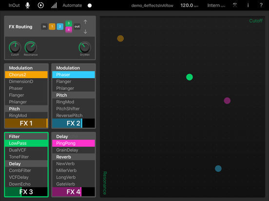 Elastic FX 是一款 4 軌綜合效果器 App,相當簡單且直覺使用,但同時也可以創造出非常獨特的音色。且 Elastic FX 可以使用行動裝置上的麥克風、外部音源或是透過 Audiobus 等軟體,用內部的 App 音源互相串接,是相當好玩易用。
