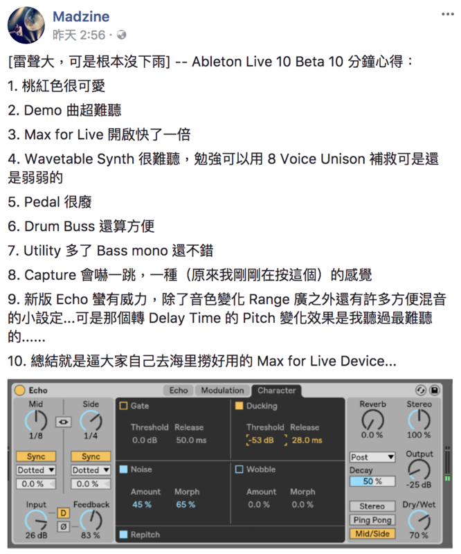 相信有關注 Ableton Live 的朋友,在去年底都有 Follow 到 Live 即將推出最新版本 10,在這個月 Ableton 已經開始開放公測 Beta 版本~