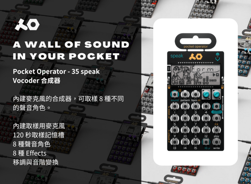 PO-35 speak 人聲 Vocoder / 取樣機內建 Sequencer 以及八種不同可變換的人聲音色