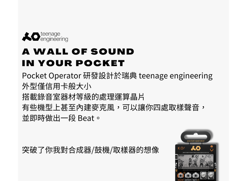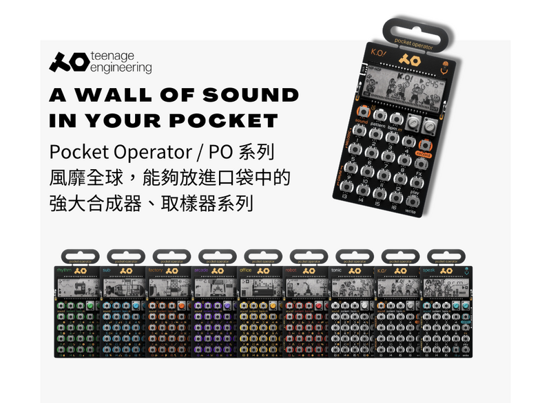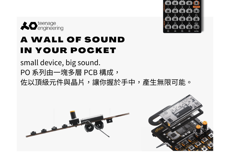 PO 系列研發設計於瑞典 teenage engineering,外型僅信用卡般大小,搭載錄音室器材等級的處理運算晶片。