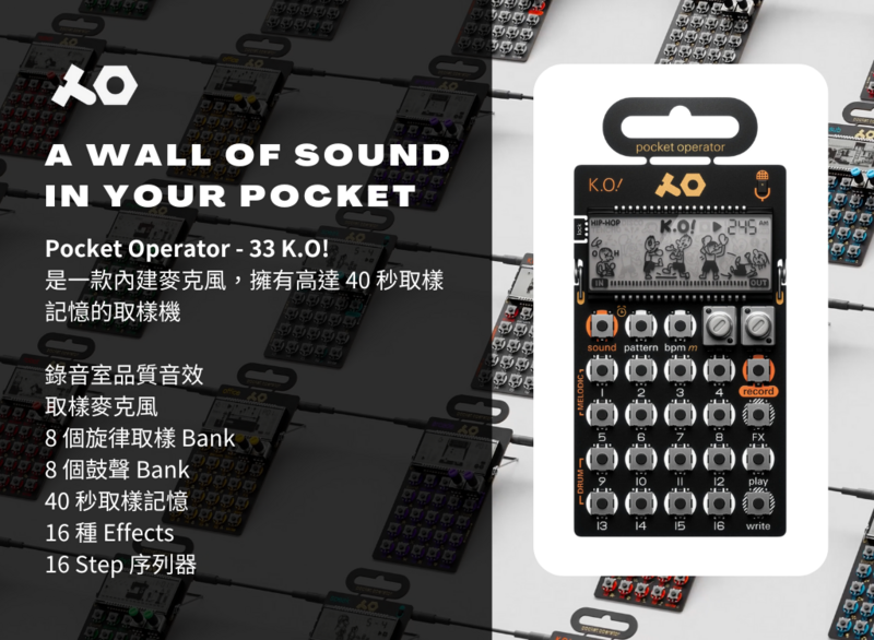 取樣時間 40 秒、帶有內建麥克風的微取樣機 - PO-33 K.O!