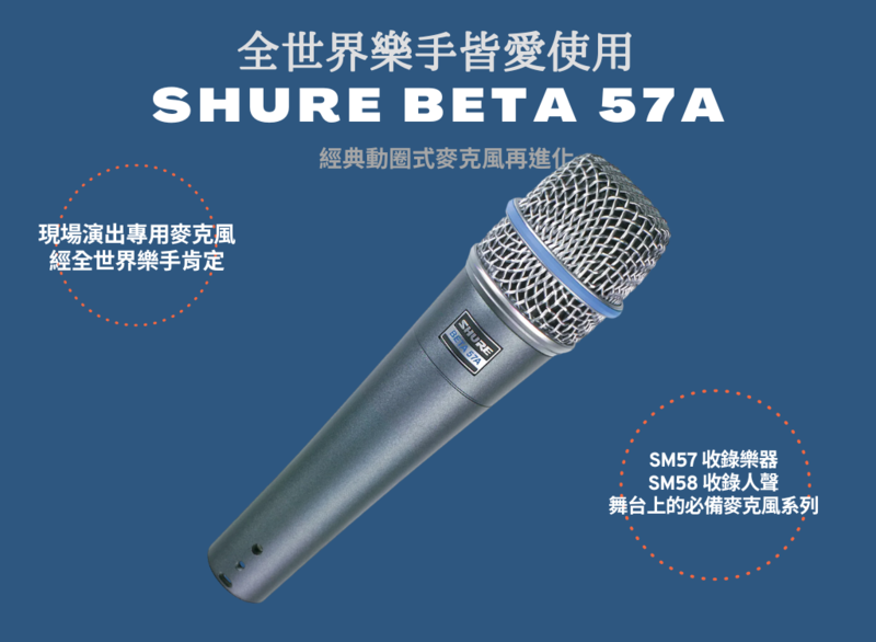 Shure BETA 57A 動圈式麥克風 BETA57 SM 57 現場演出麥克風再進化 - DigiLog 聲響實驗室