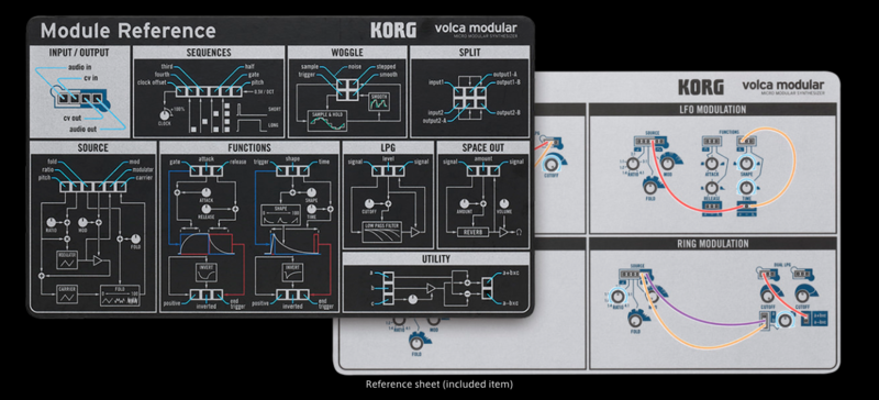 Volca Modular 包含了獨立的類比合成聲音、數位引擎和序列器。每一個 Modules 都可以完全獨立運作。內部線路本身有連接在一起,在沒有接 patch 線以前也可以發出聲音。面板上也有白色線引導你連接。從面板來看, Volca Modular 有三角波振盪器、Modulator、Wave Folder 、封波產生器 (ADH)、Woggle 隨機訊號產生器...等等,當然也有跟其他 volca 系列相同的 16-step 序列器。走西岸風格,有別於傳統合成器模式,會有許多特別的聲音。帶有 8 ” Modules “ 和 50 個 patch points。如果你是初心者的話,可以照著面板上的線來連接並且控制那獨一無二的類比聲音。