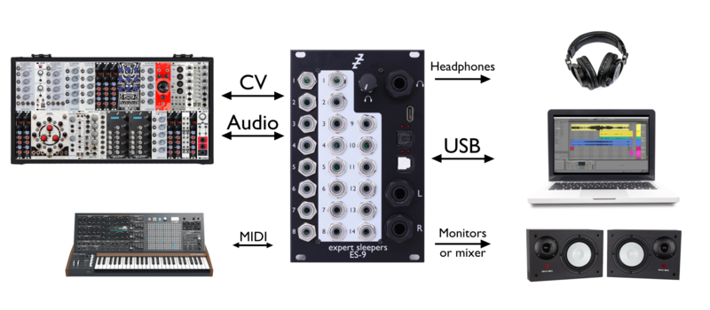 The ES-9 is a Eurorack 16-in/16-out USB audio interface, with DC-coupled inputs and outputs that can be used for both audio and CVs.