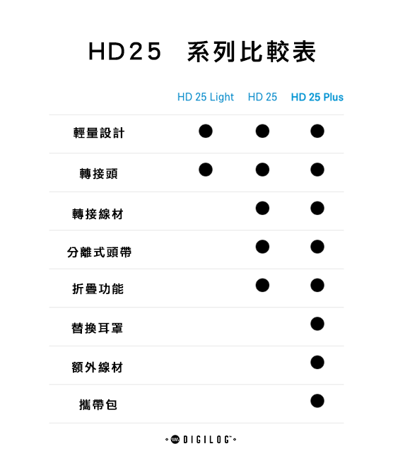 由於輕量化以及可調式的單耳聆聽設計,讓 HD 25 成為手持監聽需求不可或缺的選擇,封閉式的設計讓 HD 25 能為您提供有效的隔音效果。HD 25 配備高音壓及耐用的材質,使該系列能夠良好的應付音量較大的環境,無論是給音控、錄音室監聽、聲響配備測試,又或是舞台攝影或是 DJ 都是相當不錯的選擇。
