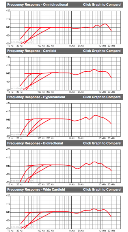 • 指向性:Omnidirectional, Wide Cardioid, Cardioid, Hypercardioid, and Figure of Eight