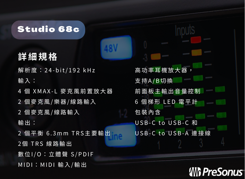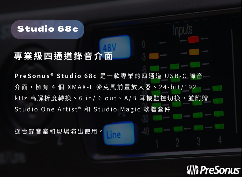 首頁 » 錄音介面 » USB Type-C 錄音介面 » PreSonus [已停售] Studio 68c 錄音介面
