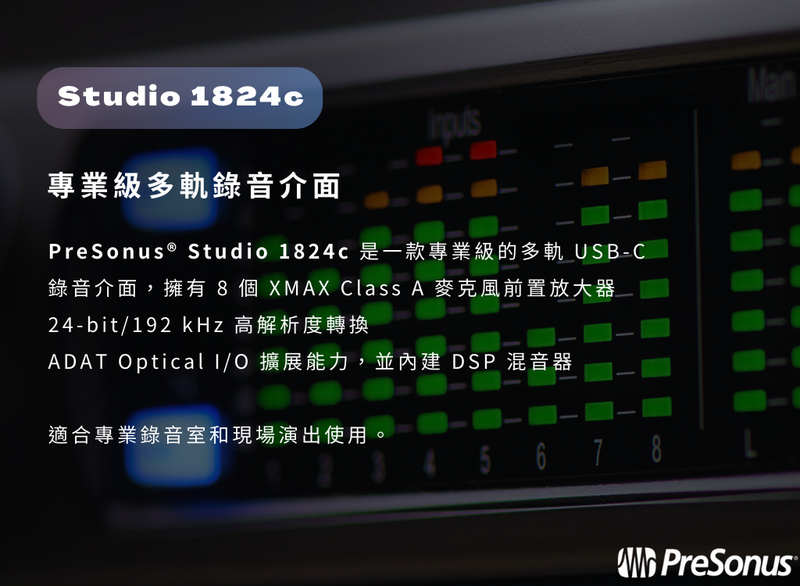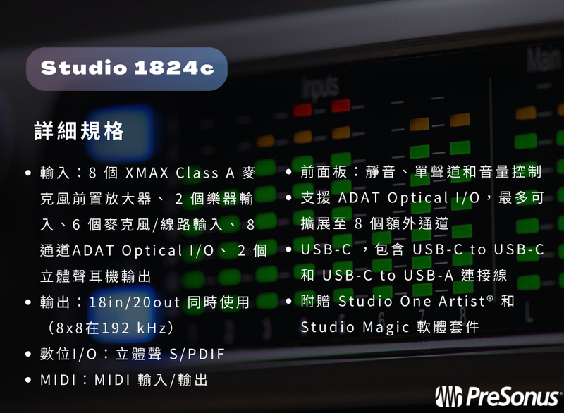 錄製樂團的好選擇!PreSonus Studio 1824c 錄音介面
