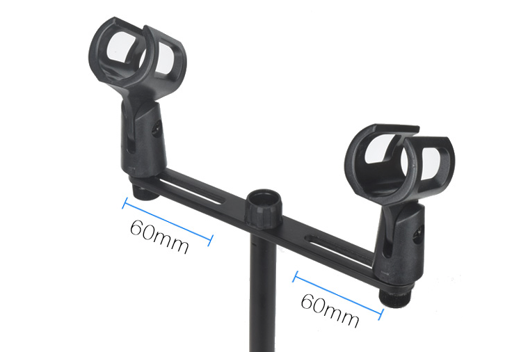 底座含 2 顆螺絲,可安裝 2 個麥克風,適用於立體聲收音方式,間距 60mm,方便使用者調整角度並測量 XY 定位,可快速解決錄音需求,金屬材質堅固耐用,將螺絲轉緊可穩固麥克風,不易晃動鬆脫。