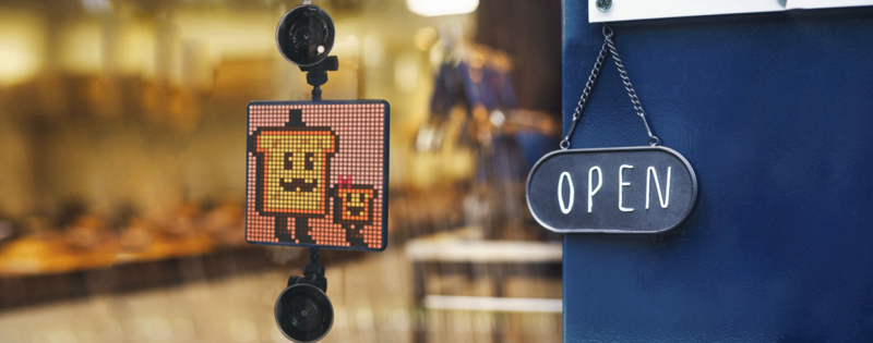 由另外接上的支架,可讓 Pixoo 成為店家的公告牌