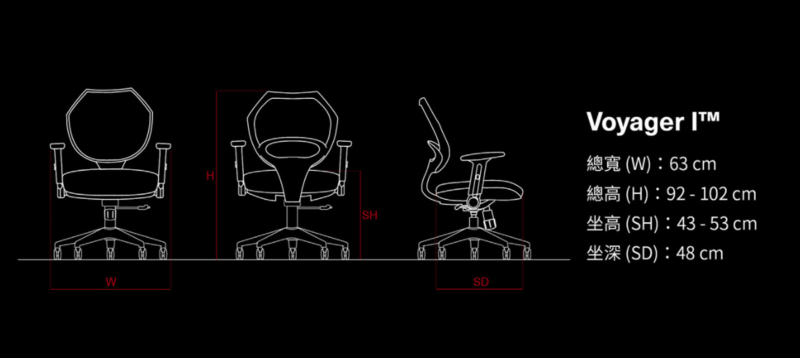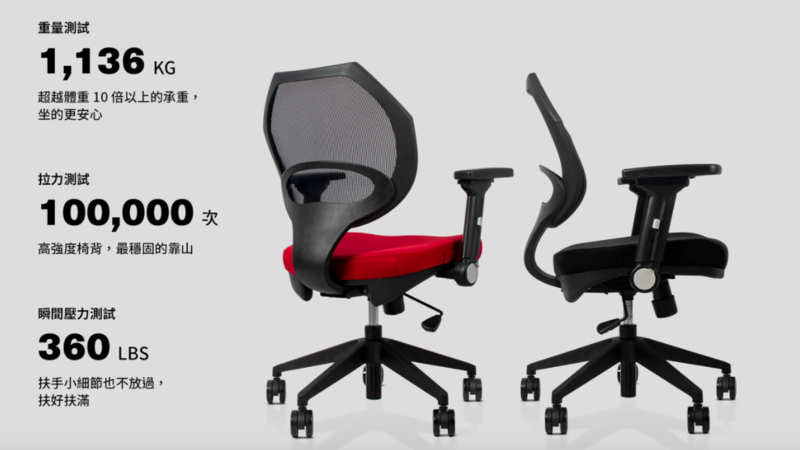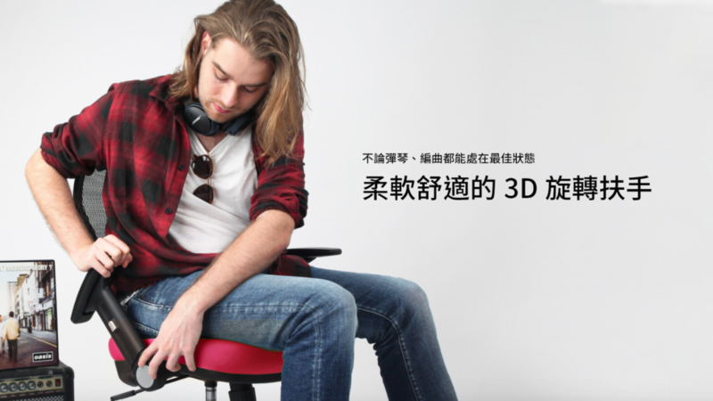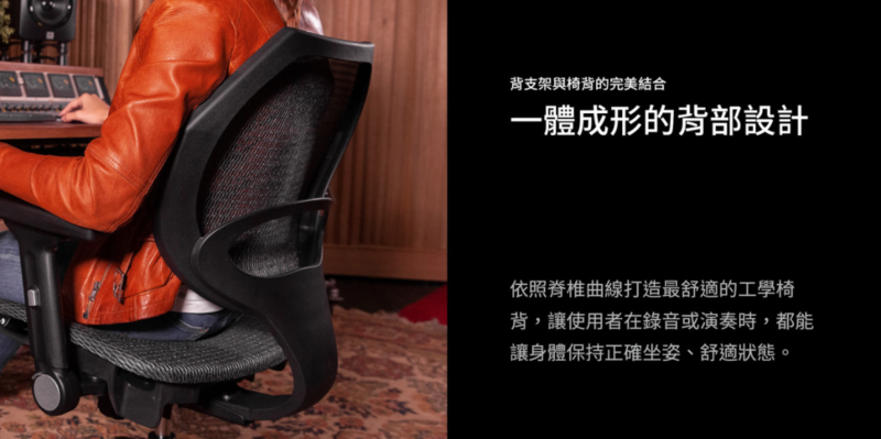 可收折及高低調整的扶手配置;背後收納空間;工學彈力椅背。