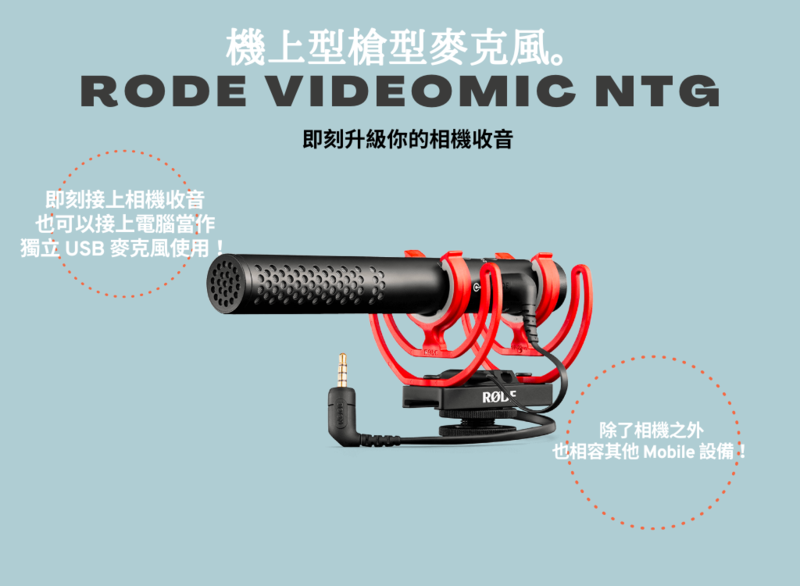 RØDE VideoMic NTG 是一款極其多功能的麥克風,具有無與倫比的特性集。無論你需要在哪裡錄製音頻,它都能提供驚人的音質。你可以將它與你的相機一起使用,在現場錄製廣播級別的聲音。你也可以將它與你的智能手機或平板電腦一起使用,實現清晰的移動音頻。還可以將它作為桌面 USB 麥克風用於播客、遊戲、語音通話等。一個麥克風,無窮的可能性。
