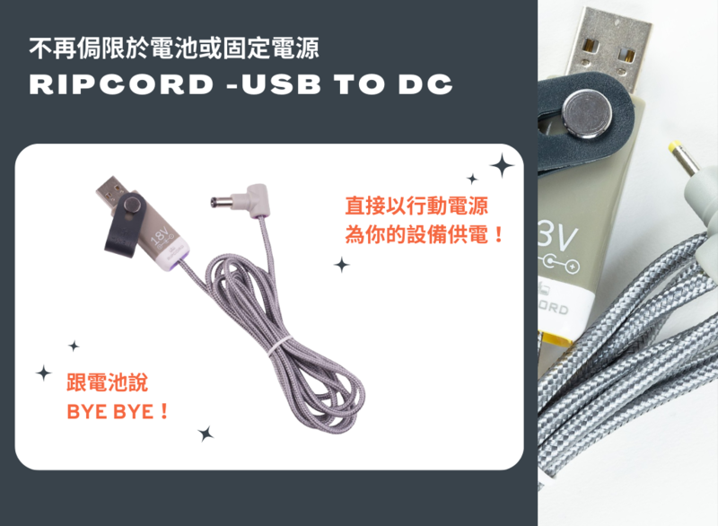 藉此,你可以使用一般用於手機、平板的行動電源來為你的合成器、吉他踏板、擴音器等器材供電,當然,你也可以使用常見的豆腐頭來連接壁插、延長線等電力來源。