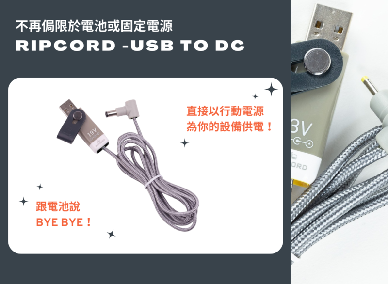 myVolts 為這個問題提出了超簡易的解方:USB 接口對 DC 直流電源轉接線材!