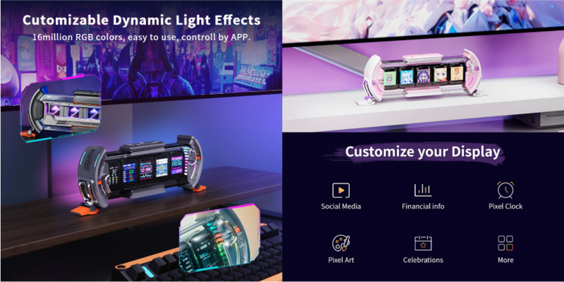 除了五個螢幕之外,機身上方也有全彩發光部分,同樣可以手機控制變換