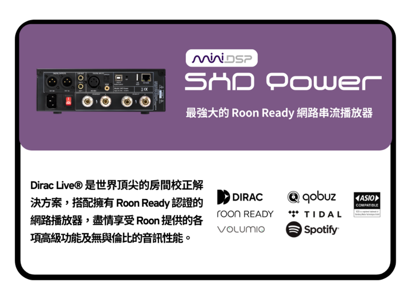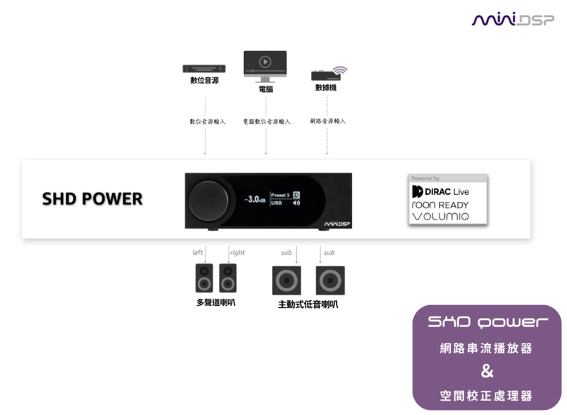 首頁 » 喇叭 » 無線串流播放器 » miniDSP SHD Power DIRAC Live 擴大機