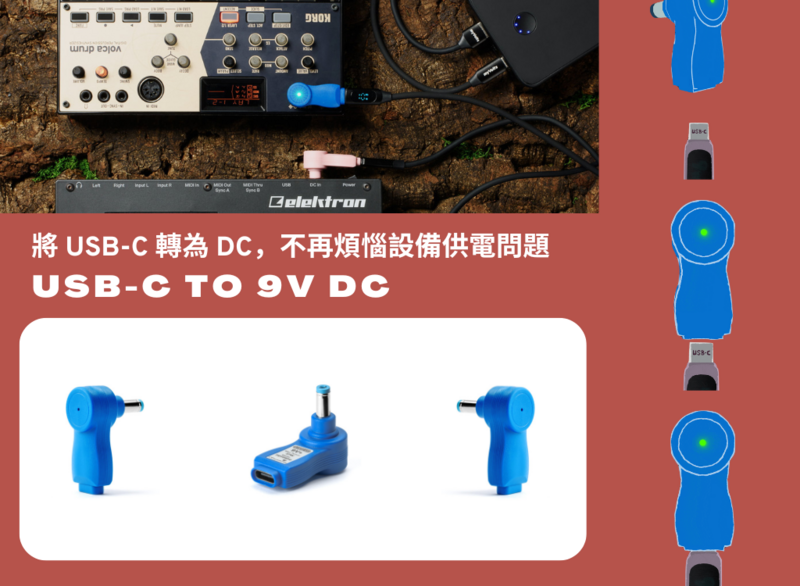 外觀是小巧的插頭,可安裝在 USB-C 線材的末端,改變輸出和尺寸,可以為使用非 5V 的電壓設備提供電源。為攜帶型電子設備提高自由度和靈活性,隨時隨地進行演奏。