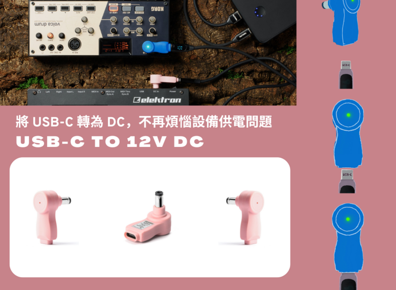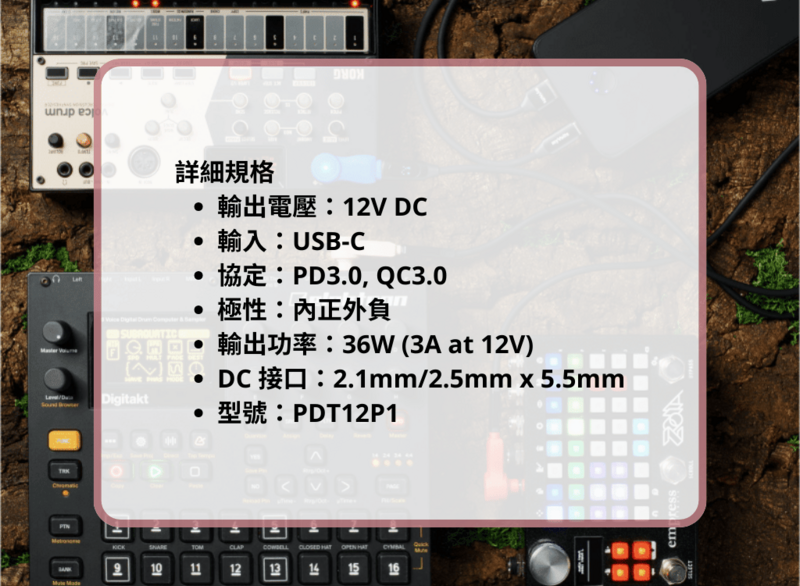 此頁面產品適用於 Elektron Digitakt / Analog Four 等需要 12V 直流,中心正極接頭的設備。