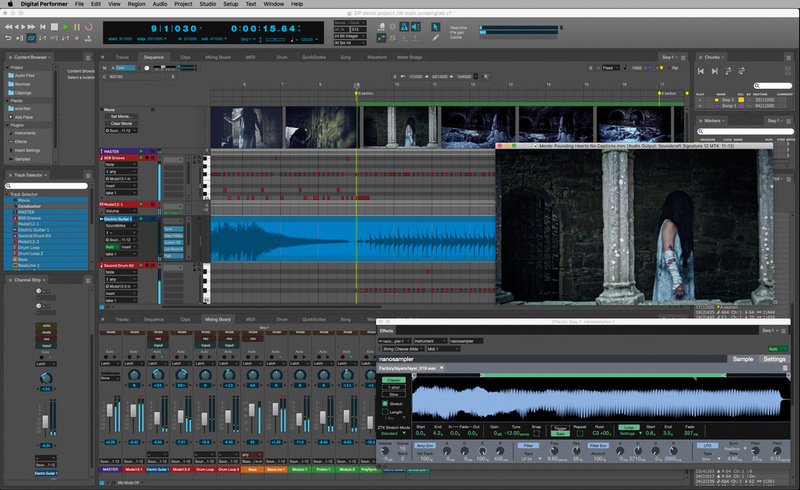 Digital Performer 的編輯窗口功能齊全,它們可以獨立作為獨立應用程序。每個窗口都配備了專門用於每種類型數據的功能,序列編輯器作為主要編輯窗口,將所有軌道和數據並列顯示在一起。